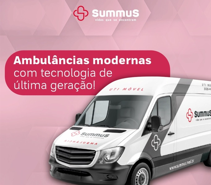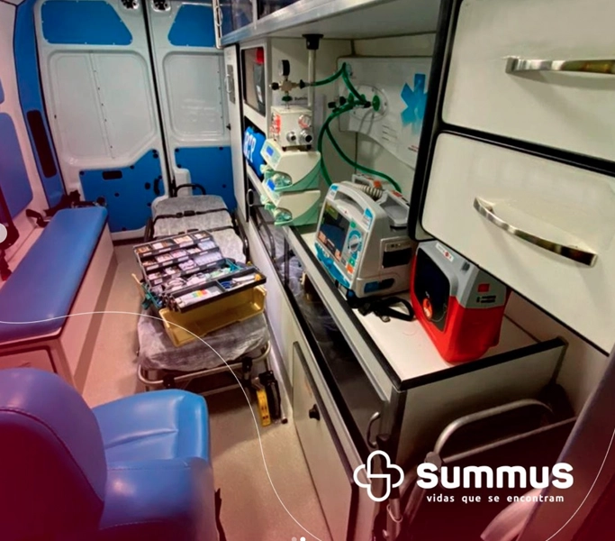Ambulâncias equipadas com todos os equipamentos e medicamentos necessários e tecnologia de ponta.